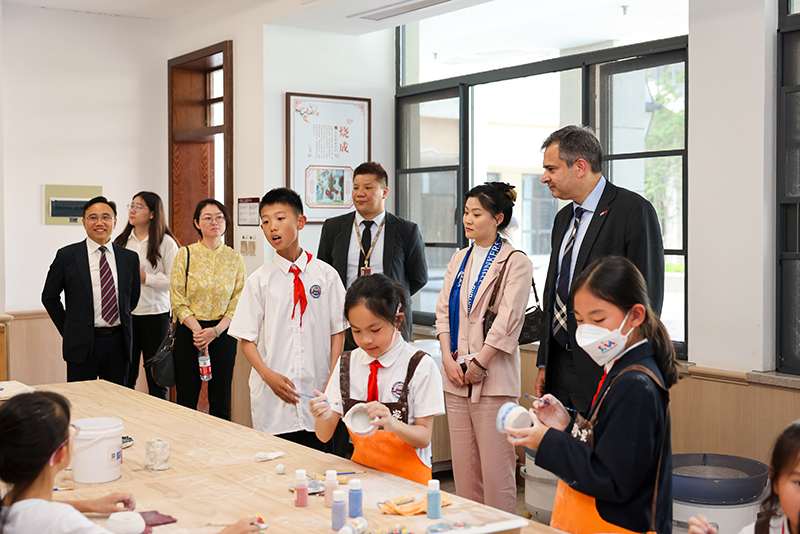 隨后,施睿耀先生一行參觀校園,對我校如公園般優雅的校園環境贊不絕口,在特色場館及功能教室中,學生講解員用流利的英文全面而詳細地進行了介紹,展現了我校學子“高學養”“高素養”的雅韻風采。