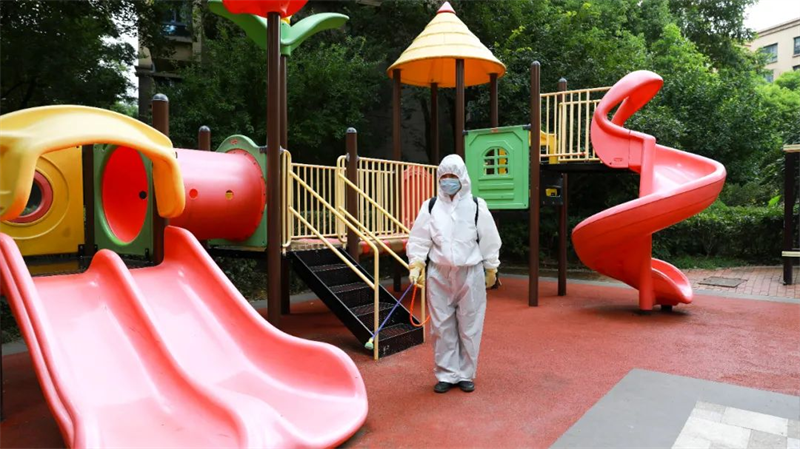 針對園區、案場、寫字樓、學校等多個項目,嚴格遵循防疫工作標準,對電梯、樓道、垃圾桶、車庫、出入口、兒童設施等公共區域堅持每日進行全覆蓋、高頻次消毒,對商寫、學校等重點區域一天不低于兩次消毒作業,不放過任何一個衛生防疫死角。